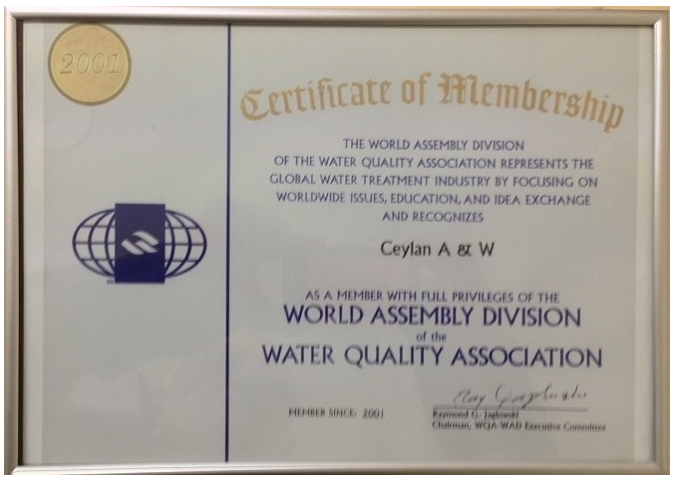 Ceylan Group OÜ joined the WQA (Water Quality Association) in 1999. In 2001 We were elected as member with full privileges.