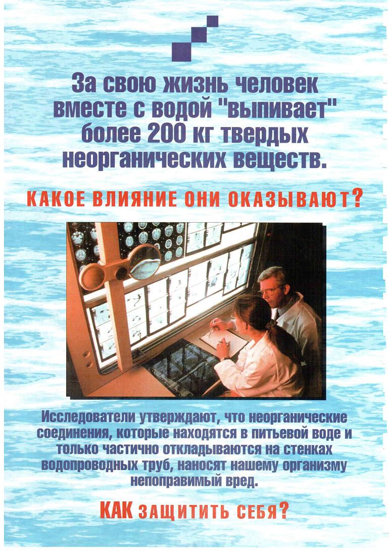 Водопроводная вода сначала проходит через 5 микронный фильтр, чтобы удалить грязь, ржавчину и другие отложения. Затем вода течет в угольный картридж, который удаляет 98% хлора и органических химических веществ. Следующим этапом этого процесса является блочный угольный фильтр для фильтрации мульти-химических соединений и суспензии. Далее идет мембрана обратного осмоса (TFC), которая отделяет 95-99% растворенных примесей от молекул воды.