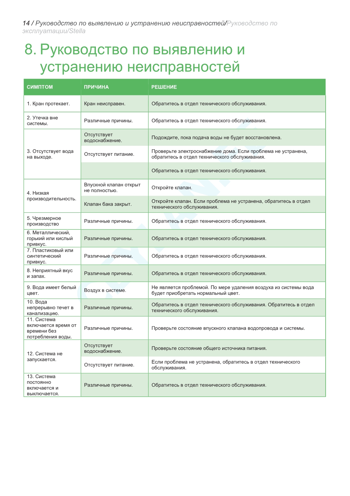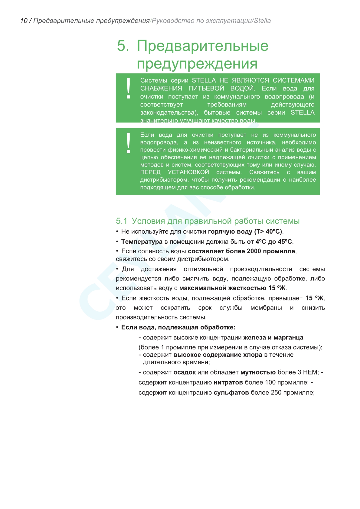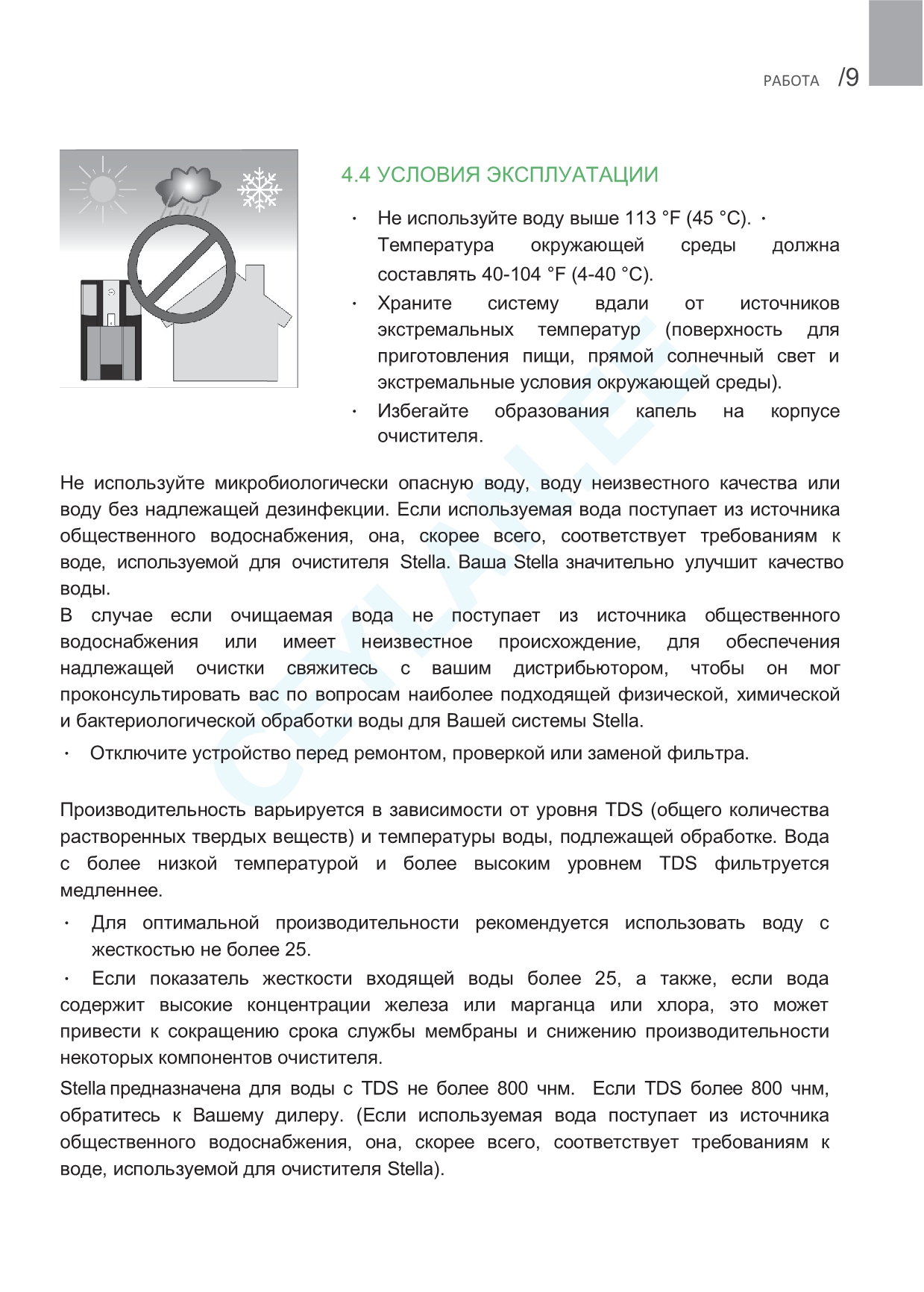 | Жесткость воды на входе | < 250 ppm |